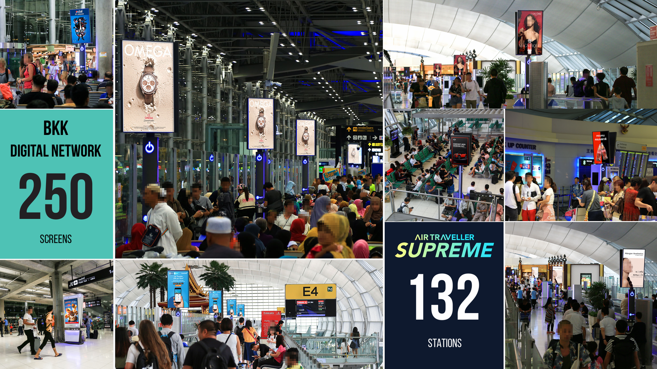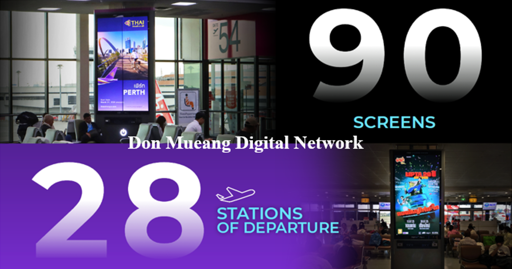 สร้างการจดจำ เข้าถึงกลุ่มเป้าหมายระดับพรีเมียมครอบคลุมสนามบินสำคัญทั่วประเทศ ทั้งในประเทศและระหว่างประเทศ ราคาคุ้มค่า เห็นผลจริง เหมาะสำหรับทุกแบรนด์ที่ต้องการภาพลักษณ์ระดับมืออาชีพ